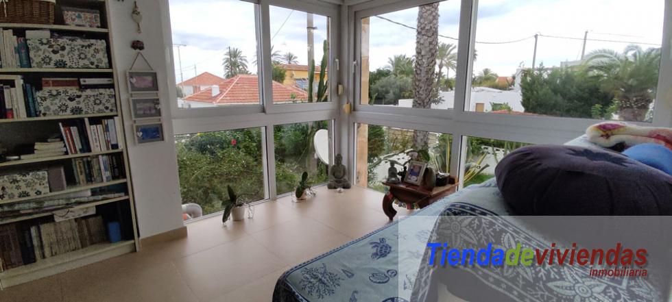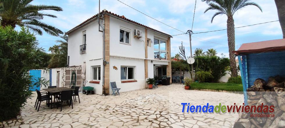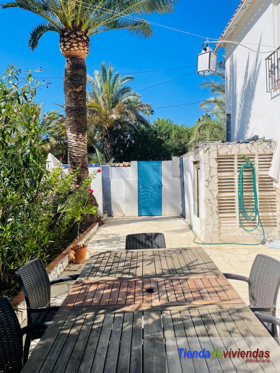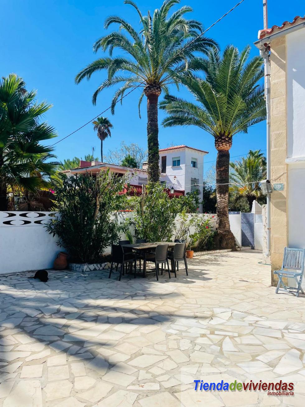 Chalet en les Bassetes con acceso a la playa a la venta en Dénia (Alicante). El inmueble está dividido en dos plantas. En la planta principal dispone de un amplio salón, dividido en varios espacios, chimenea, aire acondicionado y suelo radiante por aerotermia. Cocina comedor con acceso a la terraza y al salón. En la planta alta dispone de 3 dormitorios con aire acondicionado, ventiladores de techo y suelo radiante. Baño completo.